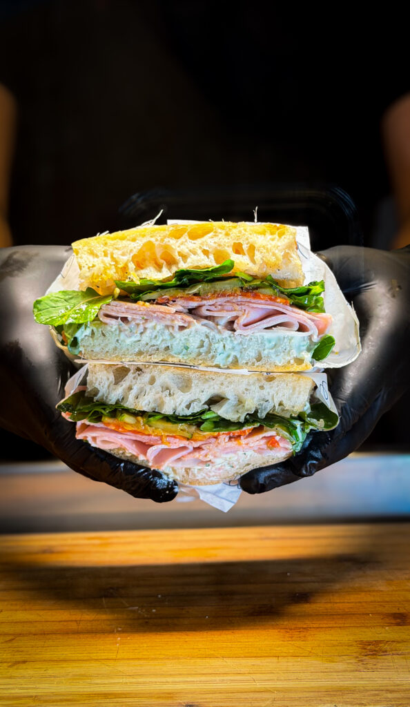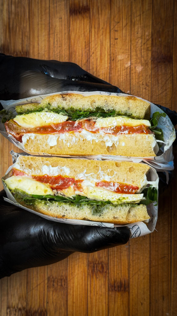 A focacceria trabalha com massa artesanal, seguindo a tradição de crosta dourada e miolo macio, além de recheios autorais desenvolvidos a partir de ingredientes selecionados, de alta qualidade.