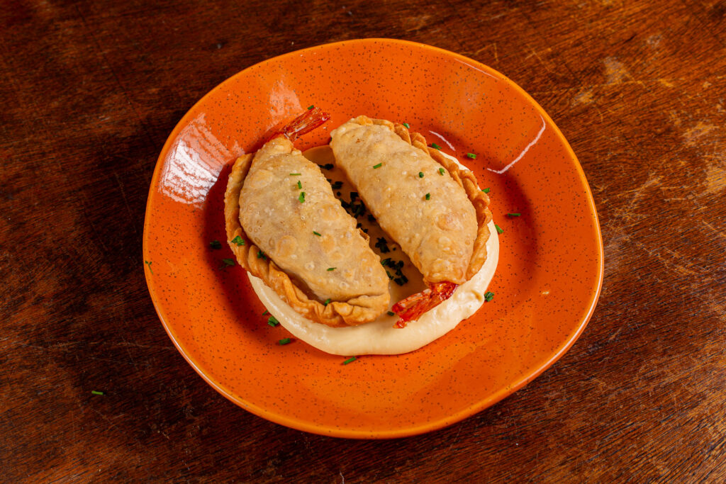 Bom de Boteco | Empanada frita de camarão e tartar de camarão acompanhando creme de queijo. Endereço: Rua Marechal Rondon, 43 – Parque Tamandaré.