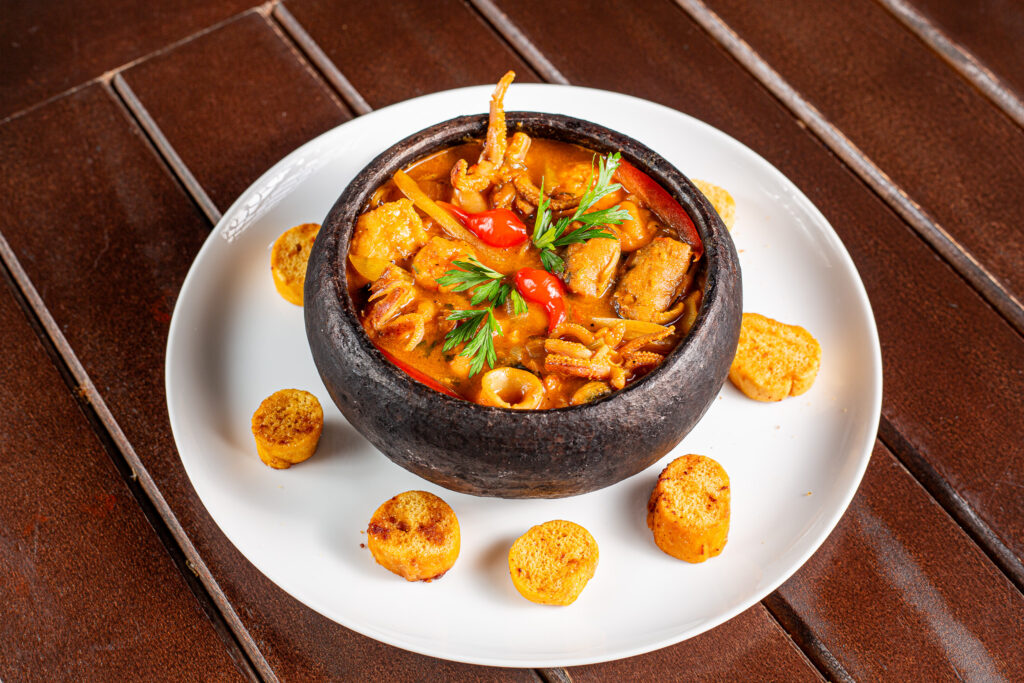 Cantinho do Peixe | Feijoada de frutos do mar: Uma mistura de mexilhão, camarão, peixe, lula e polvo cozidos juntos ao feijão. Endereço: Rua Durval de Souza, 31 – Alphaville.