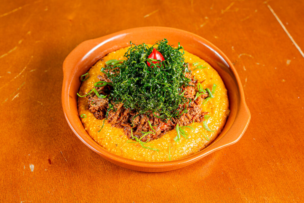 Malandro Botequim | Canjiquinha com ragu de cupim e couve cripsy. Endereço: Rua Mariano de Brito, 126.