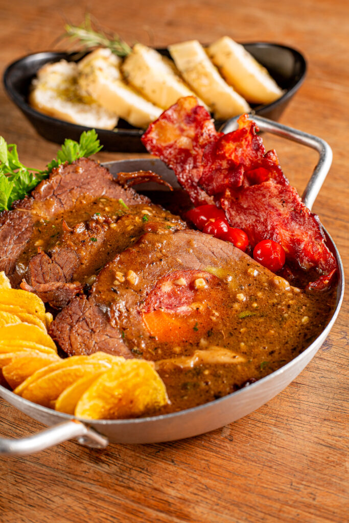 Sagritos Botequim | Cupim cachaceiro: Suculentas fatias de cupim recheado, marinado no molho de cachaça, acompanhadas de bacon crocante, chips de banana da terra e pãezinhos tostados. Endereço: Av. Pelinca, 296.