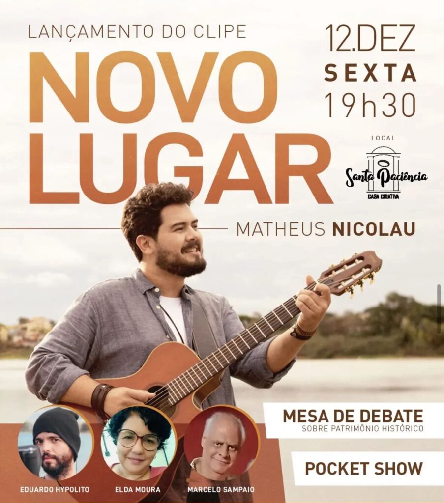 O cantor Matheus Nicolau vai lançar, na noite de sexta (12), às 19h30, na Santa Paciência Casa Criativa, o clipe “Novo Lugar”.