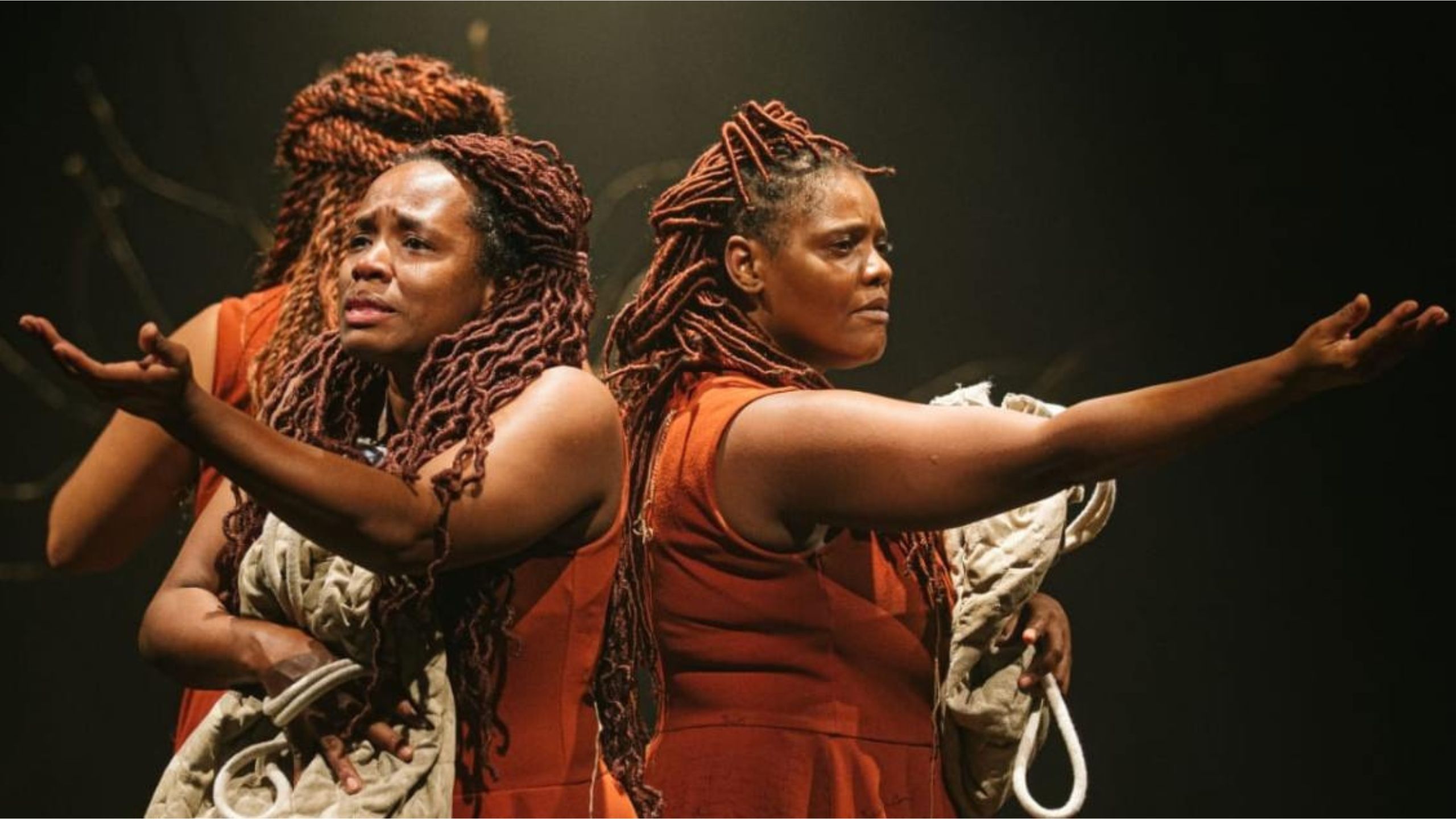 As três atrizes em cena reverberam a trajetória de Ponciá Vicêncio a partir de suas vivências, vozes e corpos, pois em todo o Brasil a referência negra feminina se fez, e se faz, profundamente cotidiana na construção da identidade cultural. No pensamento, nos ensinamentos, no afeto, no cuidado, na comida, na roupa, no ritmo, na cantiga, no matriarcado das comunidades, somos eco de uma ancestralidade que insiste em ser e estar presente numa espiral que é tanto do tempo, quanto de resistência, força, fé e ressignificação.