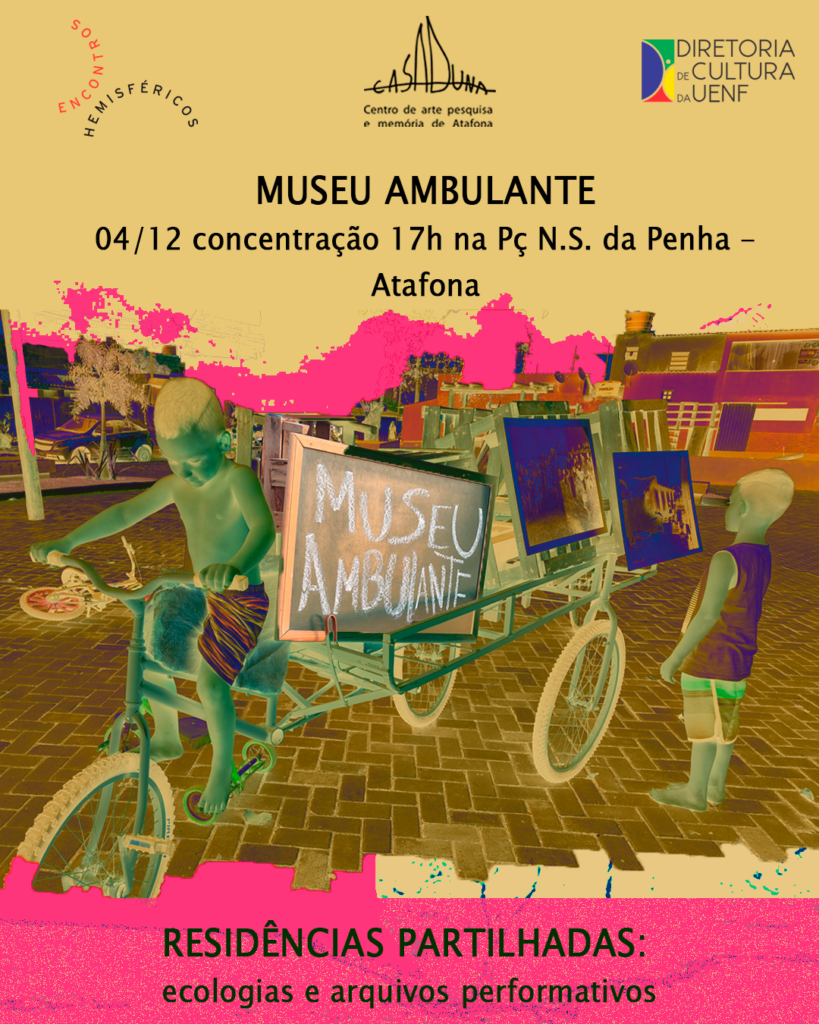 O Museu Ambulante é um projeto de performance e museologia social que ativa memórias de Atafona por meio da exibição de imagens históricas em praças e espaços públicos. Moradores e visitantes são convidados a participar de um encontro colaborativo de escuta, imaginação e educação ambiental comunitária.