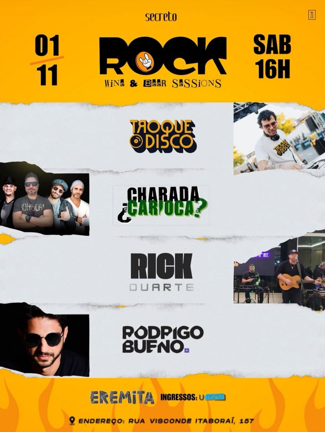 O restaurante Secreto vai invadir o Eremita bar para uma tarde de música boa e gastronomia de primeira: é o Rock Wine & Beer Sessions, que vai ocorrer no próximo sábado, dia 1 de novembro, a partir das 17h, no Eremita.