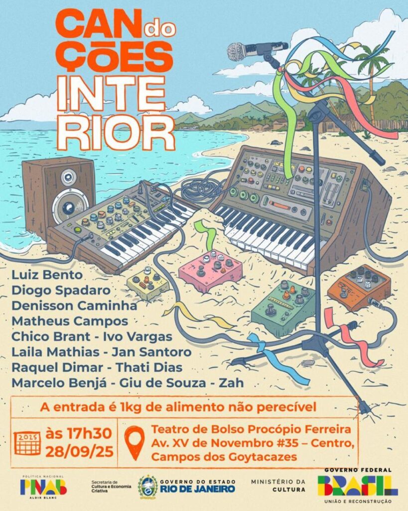 No próximo domingo (28), o Teatro de Bolso Procópio Ferreira será palco de uma noite especial dedicada à música autoral produzida no interior do estado do Rio de Janeiro. Duas edições do projeto “Canções do Interior” se encontram em uma programação inédita que reafirma a potência da cena campista e o fortalecimento da rede de artistas independentes.